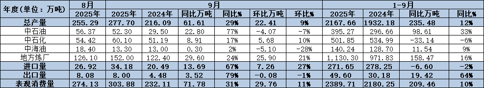 - 国内炼厂月度产量统计(2025年10月) 2025-11-10
