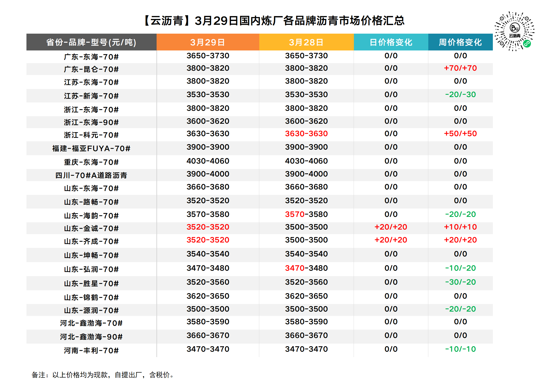 3月29日各品牌沥青价格汇总