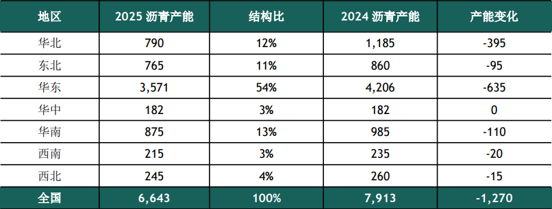 表1.中国沥青产能分布(分地区)(单位:万吨/年)