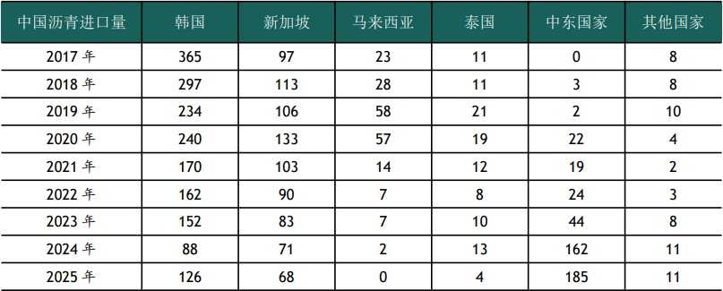 表5.2025年中国沥青进口海关统计数据 (单位:万吨)