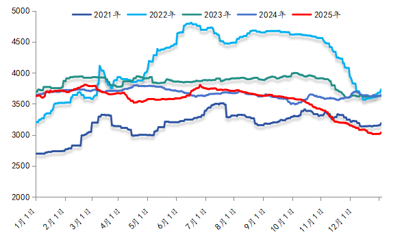 图3.2021年— 2025年 国内沥青价格走势示意图